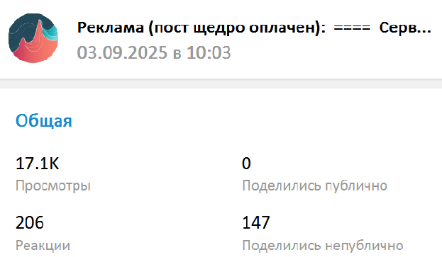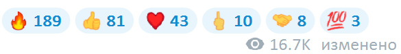 Результат — 207 реакций (20 отрицательных, основные — лайк и сердце), 147 репостов, 17 тысяч просмотров, 29 комментариев. Это было, когда в канале было 28 тысяч человек.