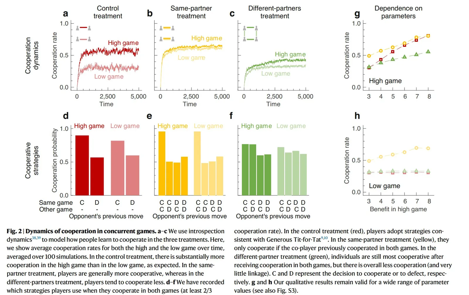 — Игроки с одним партнером используют более строгие стратегии, сотрудничая, только если партнер ранее сотрудничал в обеих играх