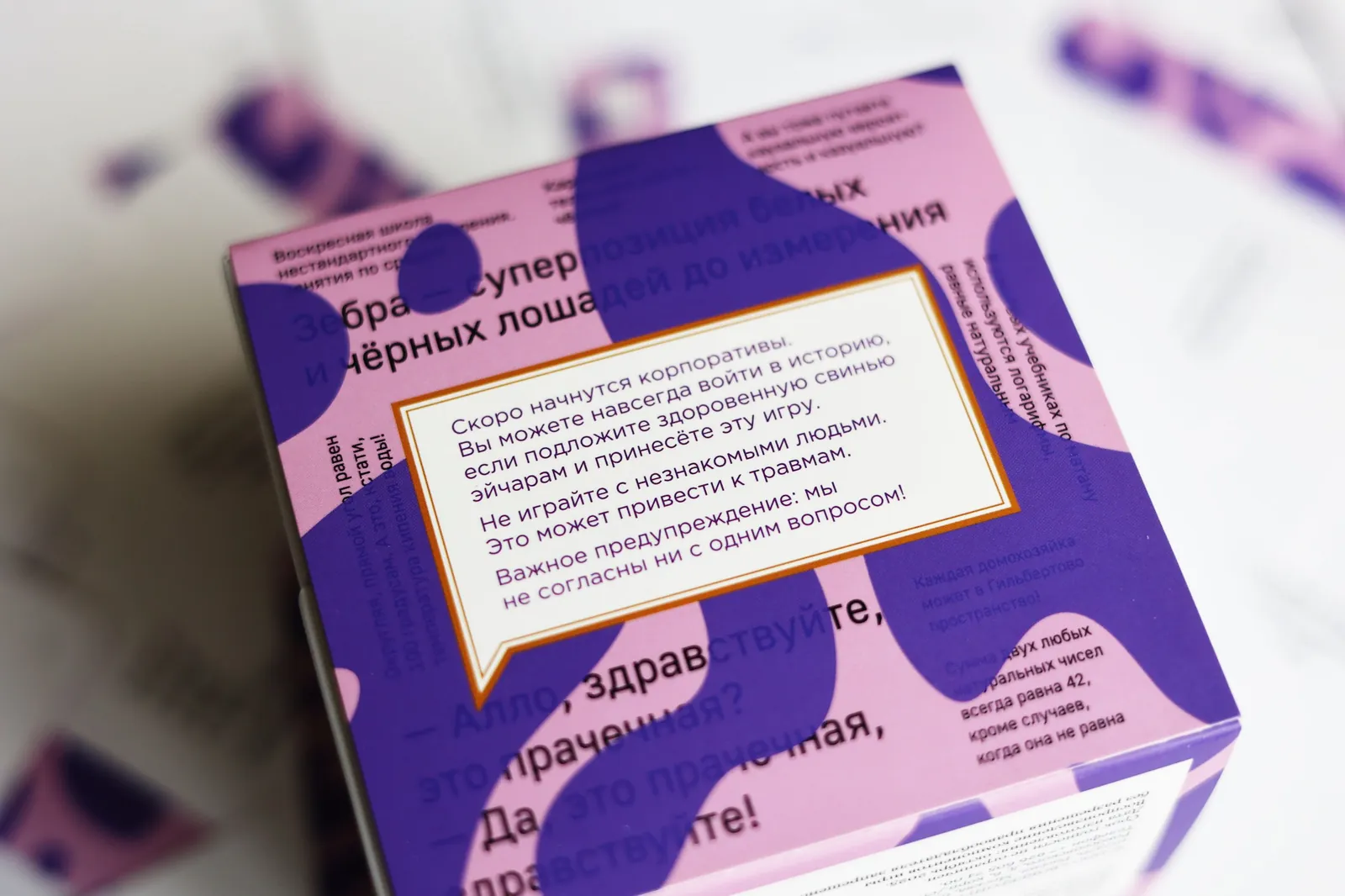 В серии Конверсейшнов есть ещё игры в похожих коробках, но они милые, там лучше узнать своего будущего партнёра или посидеть с друзьями. А эта коробка только для тех, кто хорошо понимает, что делает )
