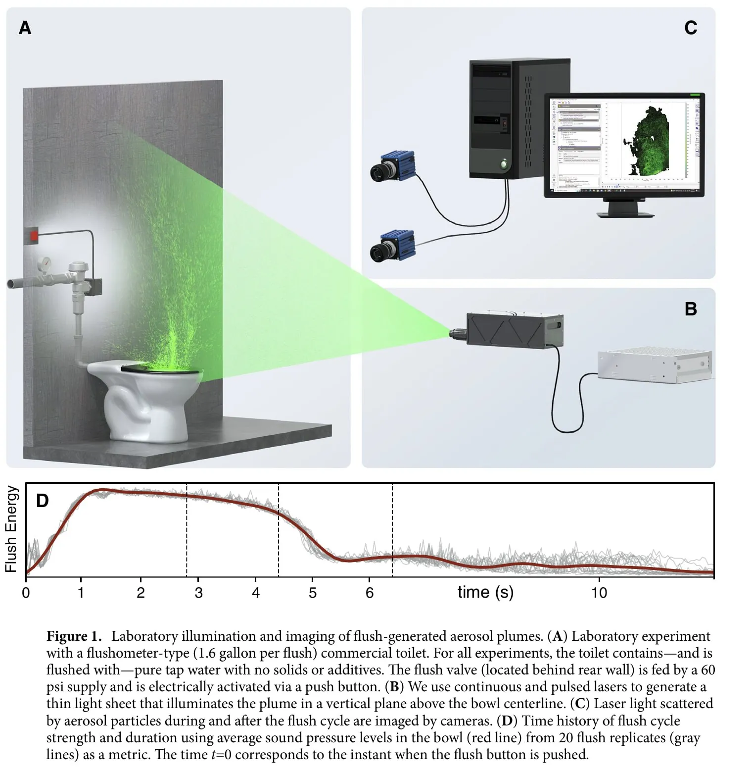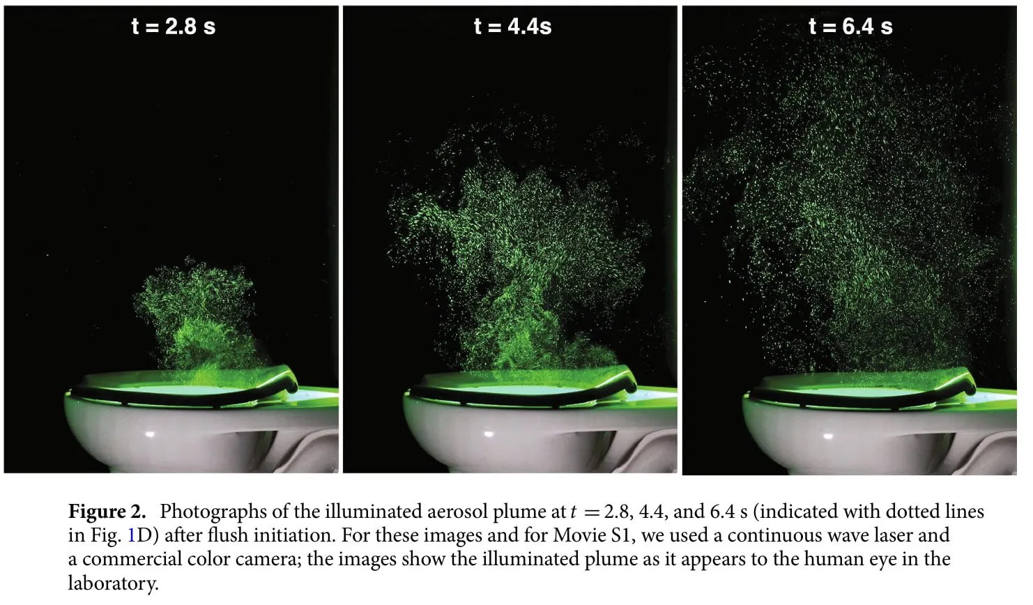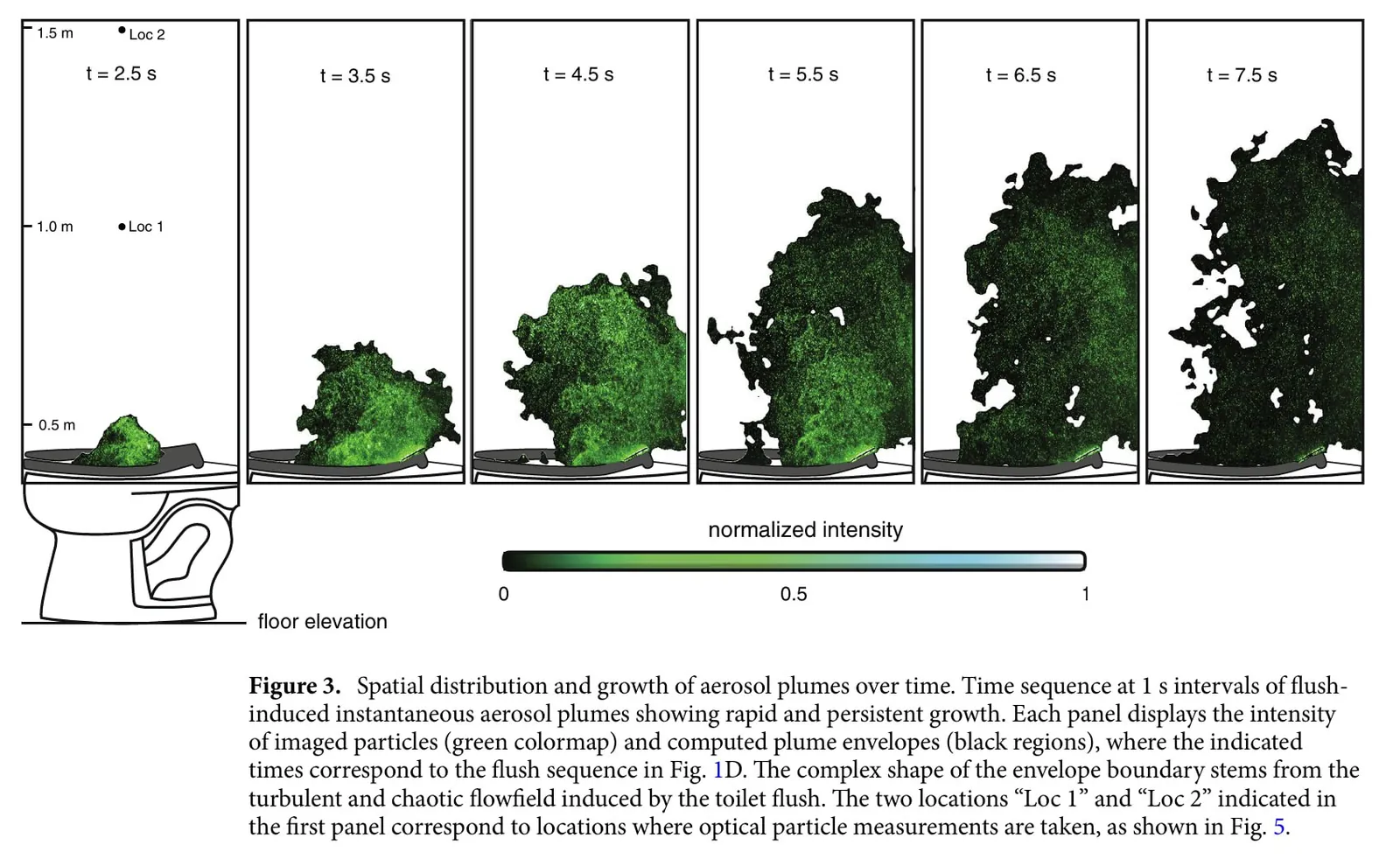 Работа качественная, попала в группу журналов Природа. Но есть ограничения: у них чистая вода, а фекалия и туалетная бумага сильно изменит геометрию потока и гидродинамику. Эксперимент проводился в туалете объемом 300 кубометров, в реальной жизни они поменьше — в реальных туалетах концентрация аэрозолей будет сильно выше. Не учитывали гидродинамику в присутсвии человека, а тело перед унитазом заблокировало бы часть потока и изменило траекторию облака (приняв часть удара на себя и свою одежду).