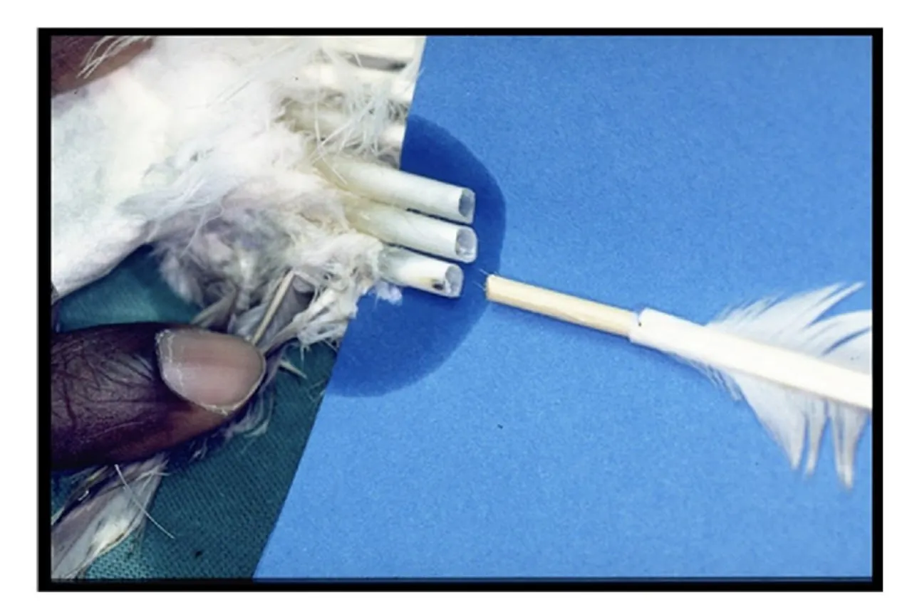 А в смысле, что перья же могут выпадать и естественным образом, когда надо. Их заботливо подбирают, приносят в госпиталь и сортируют по цвету, текстуре и размеру. Нужно выбрать максимально похожее на перо пациента и аккуратно приделать его.